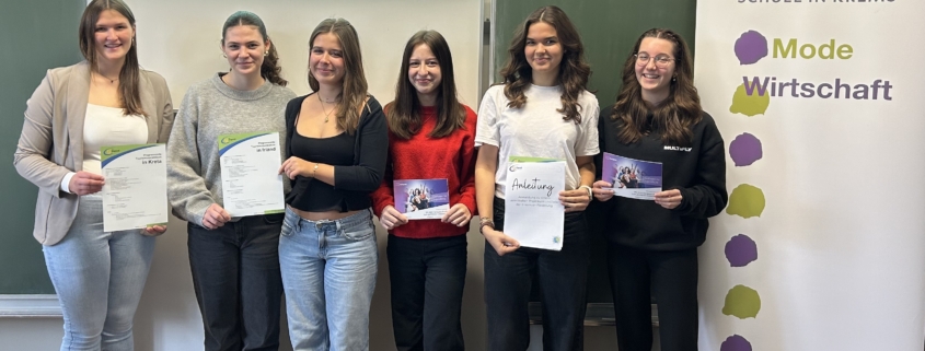 Jana Winter (Vortragende), Schülerinnen der 3 HLW: Emma Sederl, Emma Buchberger (Schulsprecherin), Carina Gierer, Florentina Hölzl, Katharina Müller