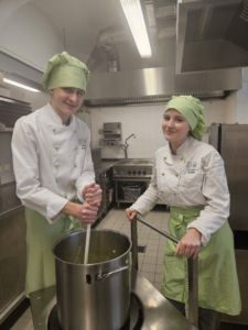 Zubereitet werden die Speisen von der 2. Jahrgang der HLW sowie der 2. Klasse der FW.