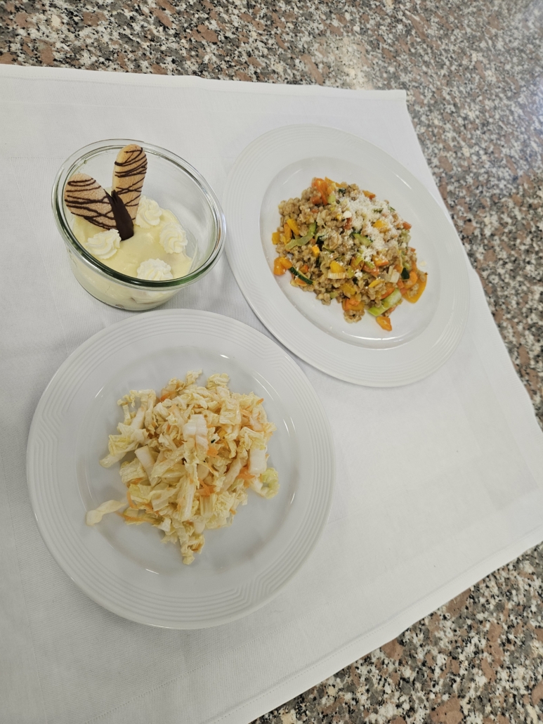 Zubereitet werden die Speisen von der 2. Jahrgang der HLW sowie der 2. Klasse der FW.